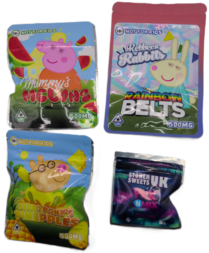 Here we have a new mixture of very nice sweets edibles. They are all 500mg but 1 brand is 350mg the stoner sweets UK Pick n Mix.